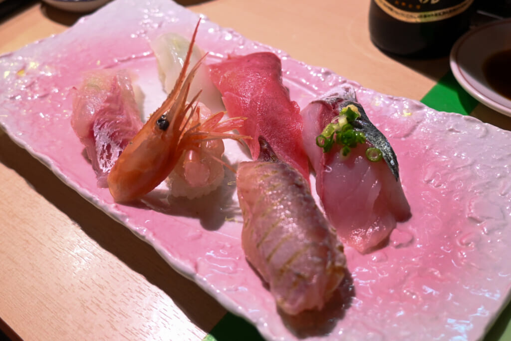 本日のとれたてにぎりは6貫で1500円だ