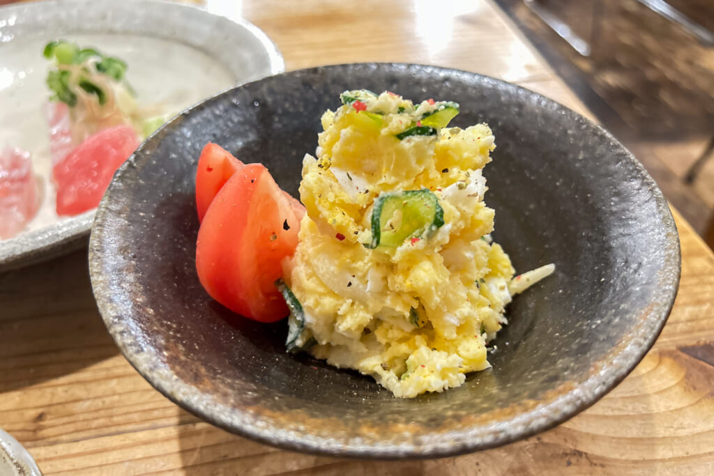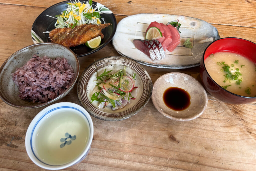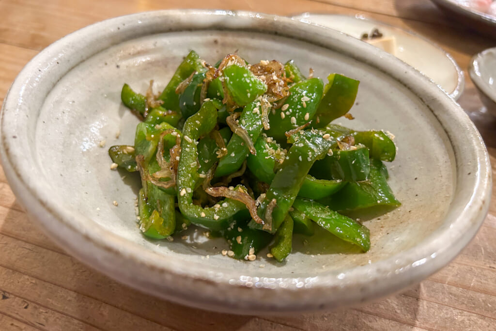 肴はおすすめがカウンター上のホワイトボードに。何でもあるよという感じだ。個人的にはつき出しが気に入っている。夏場は冷奴が多いがあかねちゃんお手製の山椒の醤油漬けが乗っていたりで、それだけで1合はいける。刺身はその日入った新鮮な魚を。焼き物、揚げ物、炒め物、煮物と何を食べても美味い。梅干しにらっきょなんてのもね。運がよければあるとき限定夜の定食(1600円)などと言うのももある(只今提供停止中)。おかずつつきながら飲むっていうのもいいね。