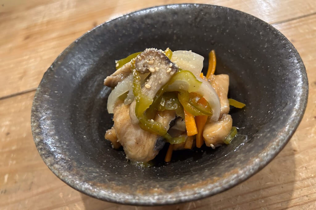居酒屋らしくない居酒屋なんだけど、けっこう肴が美味いし酒も美味い。あかねちゃんが料理上手くって、何食っても美味い。ひとりで料理しているので、忙しくなるとちょっと大変だなあと同情しながら肴待ちの間に酒が進む。「ちょっと時間かかるよ」と吉次郎さんはつっけんどんに言うが、困った表情をする客はいない。
