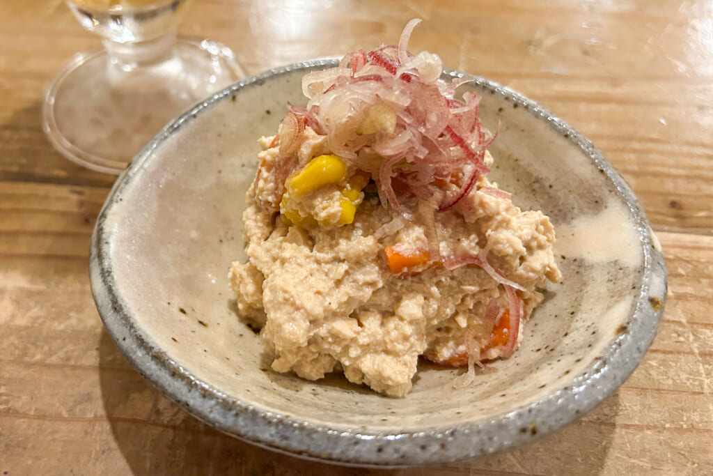 酒は一の蔵、つき出しは山椒の醤油漬けがのった冷奴
