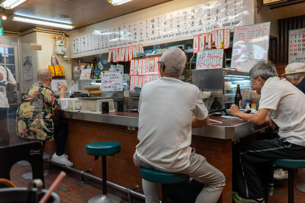 丸徳に限らず大阪には朝から飲める店が多い。というか普通だ。営業時間が長いので当然酔客の滞在時間は長くなる。だからそんな店は『どなた様も2時間以内でお願い致します』という類の張り紙が大きく掲げられている。しかしほとんどの客が普通に2時間以内に引き上げていく。時間が過ぎたなどと急かされる客はいない。2時間という時間が短いのか長いのかそれはわからないが、誰もが酒と時間を楽しみ満足して席を立っていくように見えた。1杯だけサッとひっかけて出ていく客ももちろんいる。